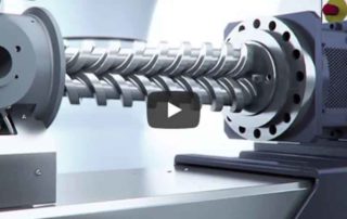The new COMPEO discharge unit is based on the principle of a conical twin screw, designed to run in a metered method. The entire controlled pressure build-up takes place in the slowly rotating twin screw.