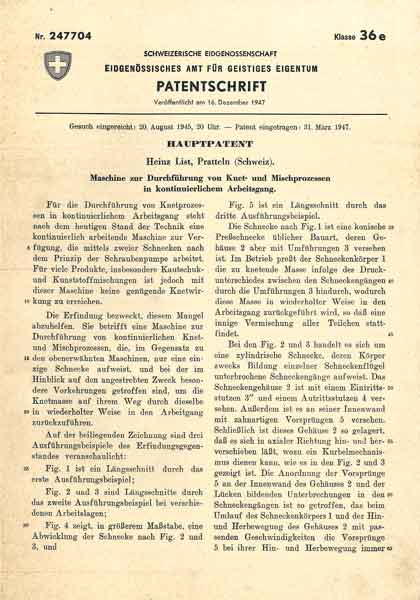 連続往復動ニーダーの発明者である工学士ハインツ・リストが、Buss社にアメリカ/カナダを除く全世界での特許使用を認める