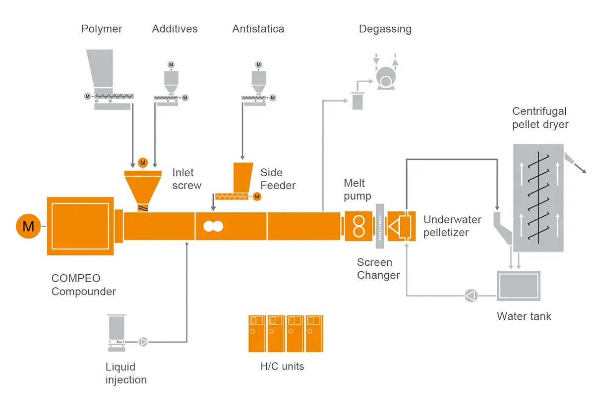 帯電防止コンパウンド用の典型的な工場設計