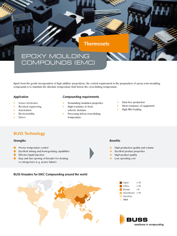 ブッスの優れたプロセス技術に裏打ちされたブッス・ニーダーは、エポキシモールディングコンパウンドの連続混練に最適な選択肢です。
