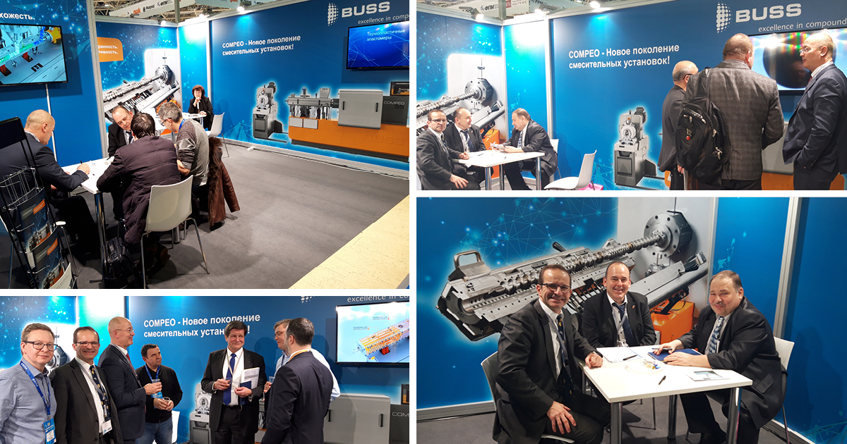 冬のロシアは万人向けではありませんが、ブッスのスタッフにとってモスクワでのInterplastica展への参加は、大変有意義な体験となりました。ロシアと東欧におけるプラスチック・ゴム業界向けの代表的展示会は本日最終日を迎えます。この3日間は多忙を極めました。当社の主要ユーザーのすべてが、次世代向け新型混練機「COMPEO」に関する情報を得ようとブースに立ち寄りました。Buss AGの欧州中東ロシア・アフリカ地域(EMERA)営業責任者であるFrank Knittelは、当社の革新的新製品COMPEOの技術面と利点に関して、中身の濃い意義ある商談を行えたと報告しています。幅広いアプリケーション、モジュラー化されたメカニズム、革新的な押出コンセプト、さらなる堅牢性、操作しやすさ、長い耐用年数 … COMPEOにはこれほど多くの利点があるため、当社のブースに足を運んでいただいた訪問客の多くから、最も魅力的な点を一つに絞るのは難しいという意見が聞かれました。
