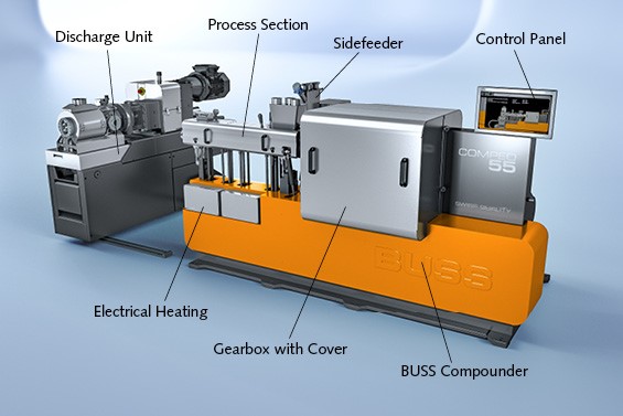 During development the new compounding system, great importance was attached to ergonomics, ease of maintenance, and energy efficiency. Lines and cables are laid as far as possible inside the machine behind easy-to-clean panels. The gearbox is covered with a soundproofing hood that also improves operational safety. To minimize energy losses, the kneader barrel is thermally insulated. Maintenance outlay is minimized by using highly resistant surface-hardened materials in the process zone.