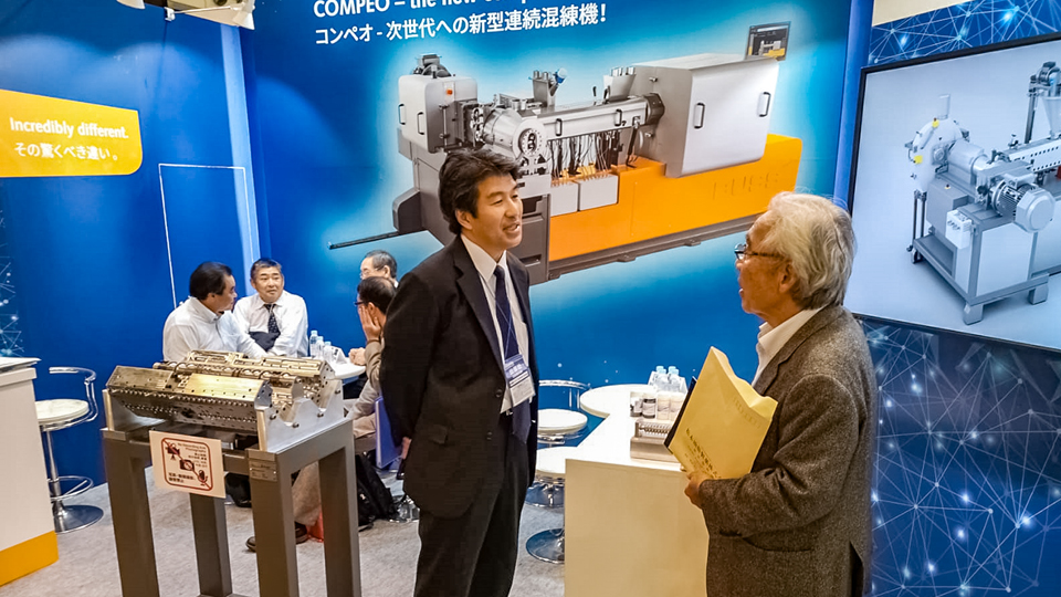 Plast Eurasia Istanbul」(トルコ)と「高機能プラスチック展」(日本・東京)は、明日最終日を迎えますが、今季の展示会は話題に事欠きません。ちょうど7か月前となる57日、ブッスは米フロリダ州オーランドで開催されたプラスチック展示会「NPE」で新型連続混練機「COMPEO」を初披露しました。それ以降相次いで開催された展示会で、このマルチ混練機の多彩な機能とアプリケーションを紹介しました。米国からイタリア、ドイツに続き、インド、中国そして現在日本と、ブッスは世界中のお客様とビジネスパートナーの方々にCOMPEOを精力的にご紹介しています。